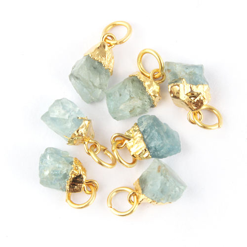 Latest Collection Natural Tiny Rough Aquamarine Connectors 24k Gold Plated Making Pendant Connector Finding Jewelry