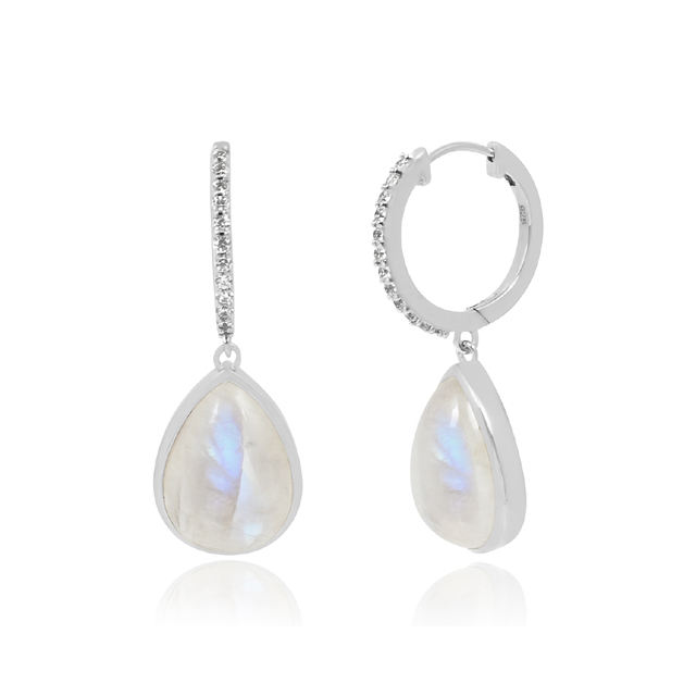 Latest design 925 sterling silver blue quartz gemstone C-shaped hoop earrings classic religious drop earrings gift for women