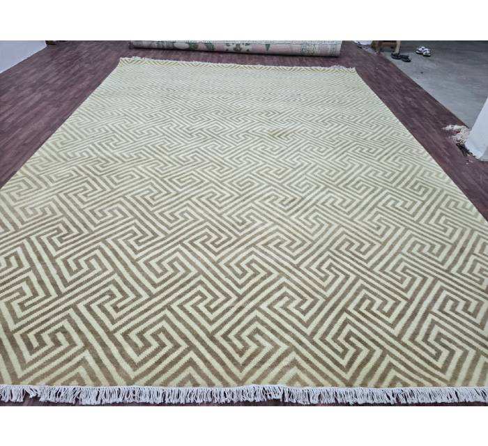 Small Runner Oushak Rug Hand Knotted:Hand Knotted 9x12 Royal Green and Ivory Traditional Turkish Style rug