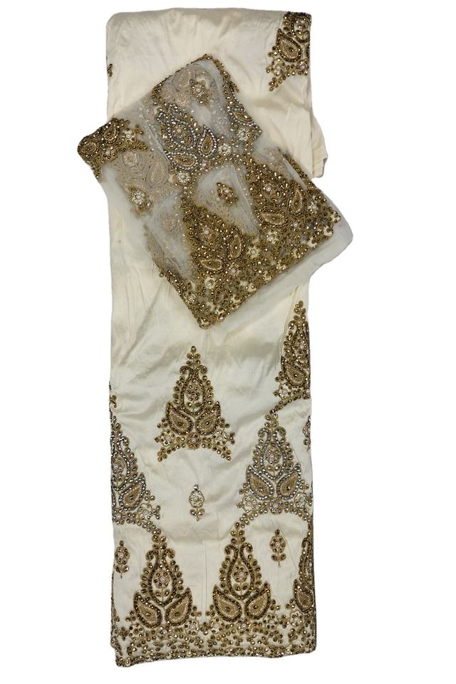 Latest for Cream White Golden Beaded Work Net Blouse for Adults Made From Silk Material George Fabric for African Clothing