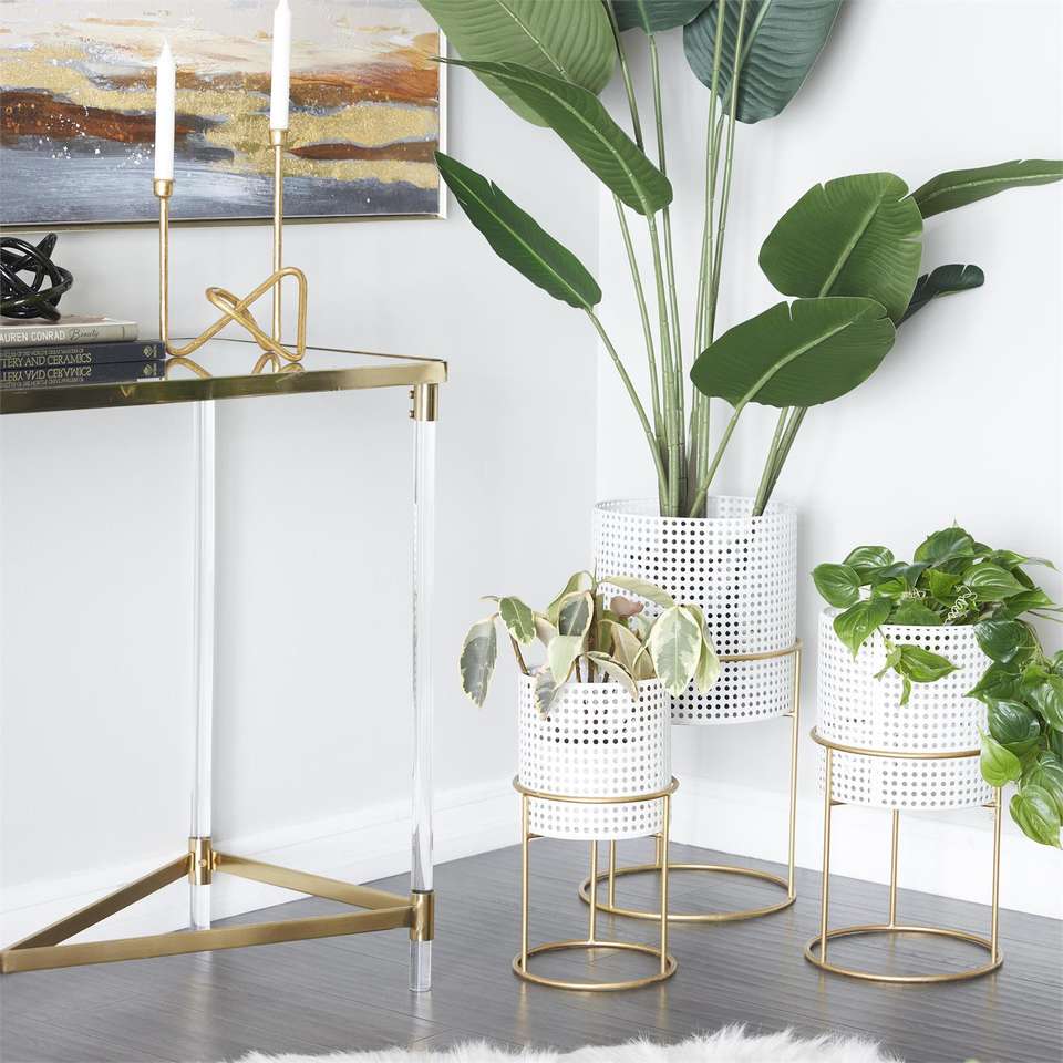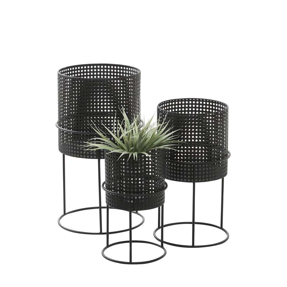 High Quality Metal Rattan Weave Inspired Planter Set Many Colors 3 Removeable Ring Stands 23\" 19\"16\"H for Garden