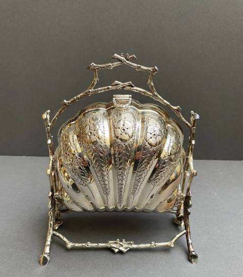 Latest silver Biscuit Box Double Shell Brass Folding Serving Platter Victorian Charm Biscuit Caddy Biscuit Barrel Box