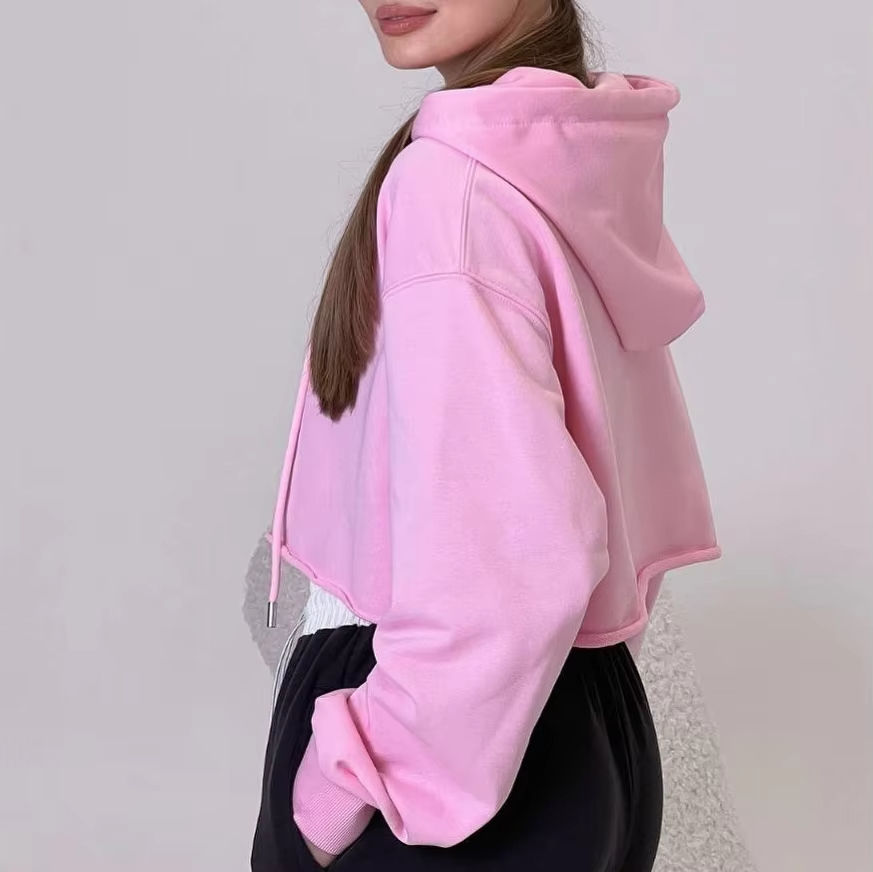 Latest style Fashion Custom Logo Y2K Streetwear Women Pink High Quality Drop Shoulder Cotton Pullover women Cropped Top Hoodie