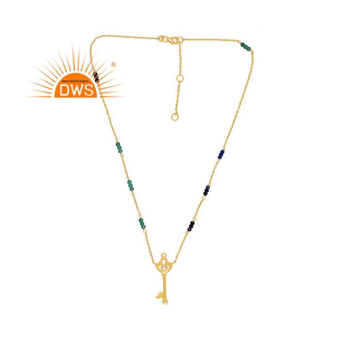 Latest trending sterling silver gold plated Lapis Lazuli & Green Onyx gemstone pendant necklace demi fine jewelry manufacturer
