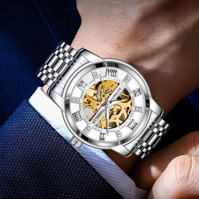 Latest trendy business mechanical watch fully automatic steel band waterproof luminous fashion trend brand watch for men