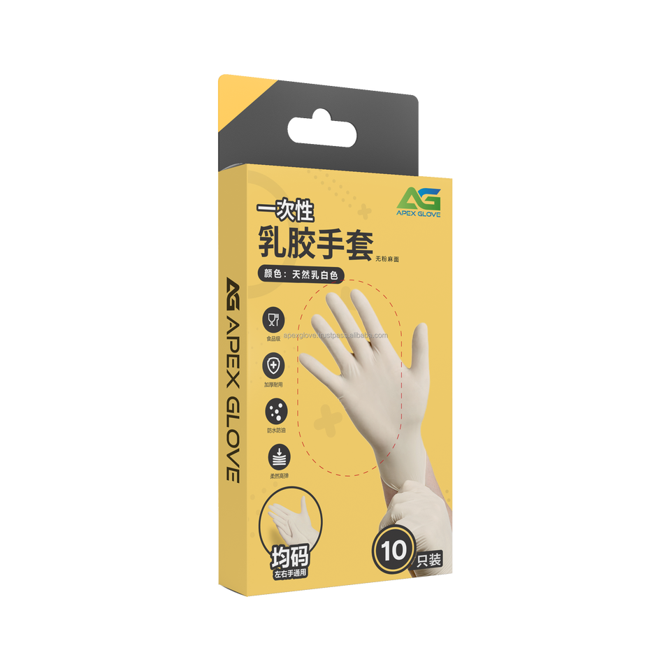 Customized Packaging Gloves Latex Powdered White Medium Thickness Comfortable Good Quality