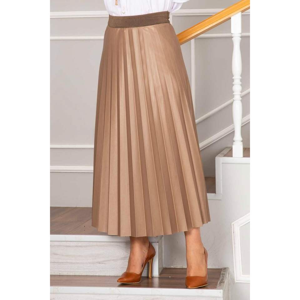 Latte Pleated Hijab Skirt with Elastic Waist Long Boy Style