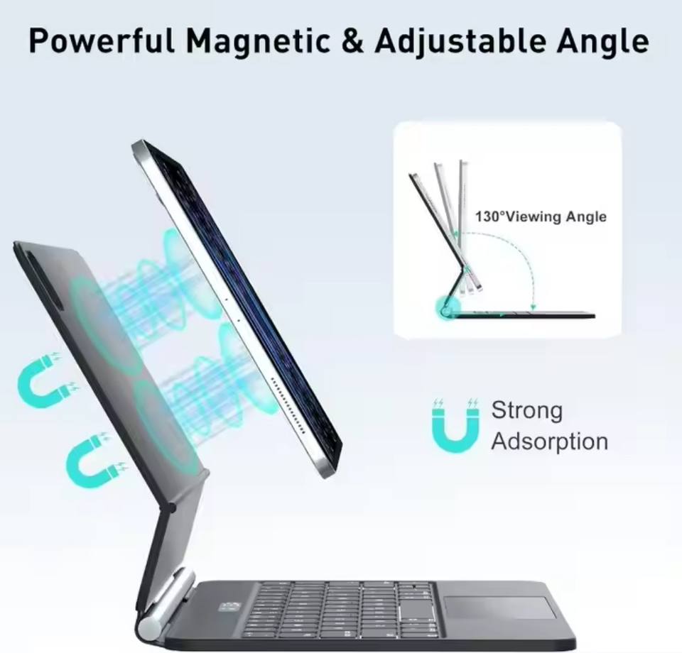 Laudtec Wireless BT Magic Keyboard Case for iPad 10.9/11 Inches Mechanical Operation with LED Backlit Trackpad Customizable Logo