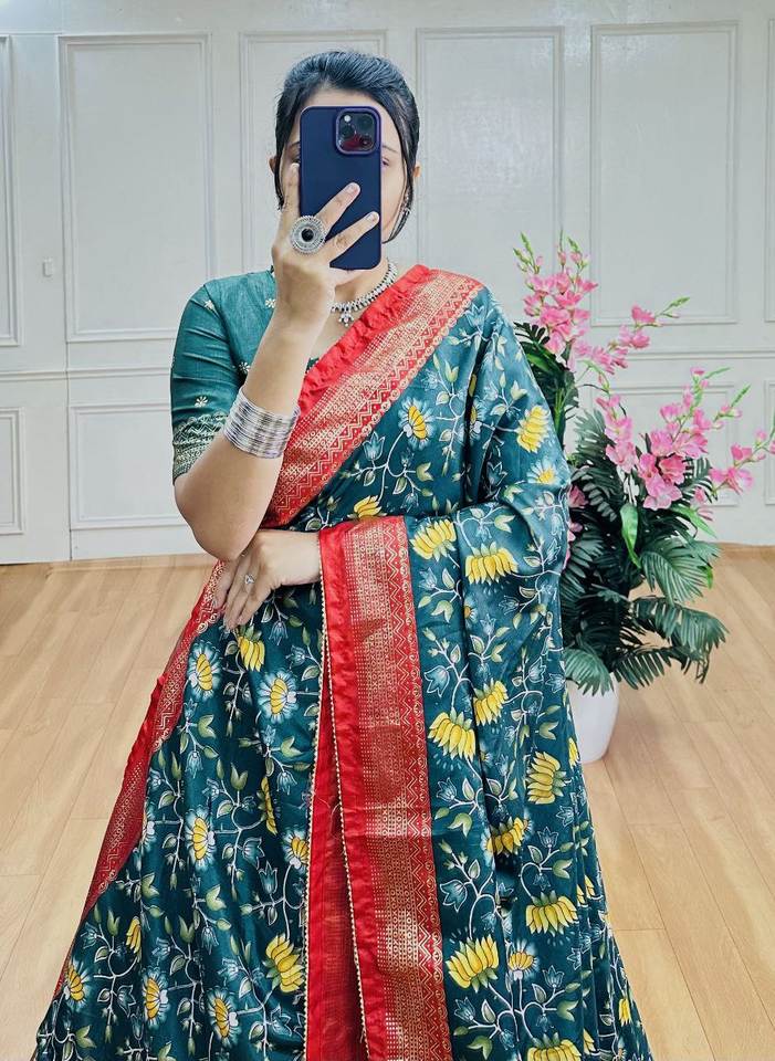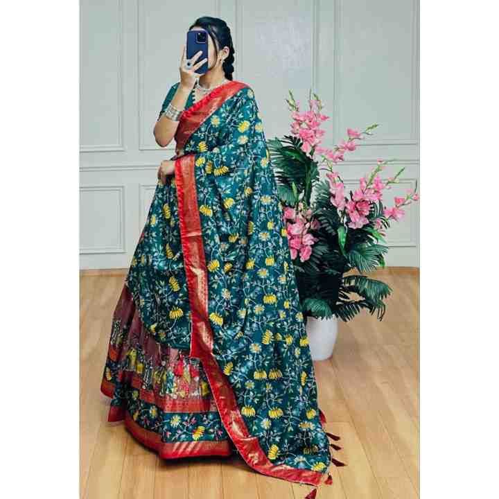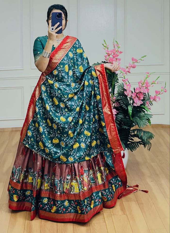 Traditional Style Tussar Silk Lehenga Choli with Kalamkari Work and Gota Patti Lace Border for Parties