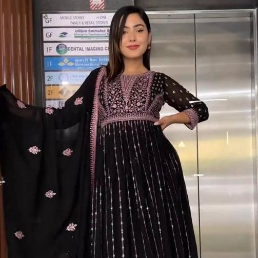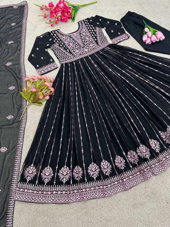 Launching New Designer Heavy Party Wear Look Fancy Nyra Cut Top-Dupatta and Fully Stitched Bottom Elegant Black 3 Pcs Suit