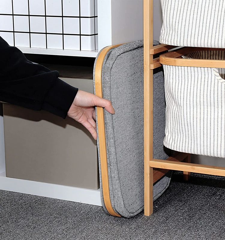 4-Tier Bamboo Laundry Storage Basket Foldable Freestanding Rack with Tilt-Out Hamper Convenient Clothes Storage Solution
