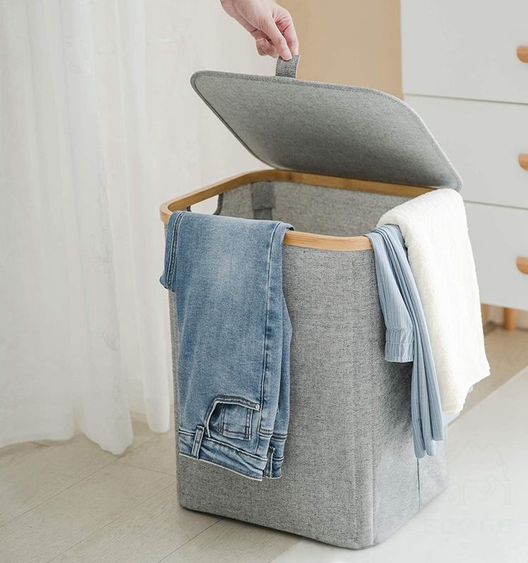 Laundry Hamper with Lid Dirty Clothes Hamper with Handle Bamboo Laundry Basket
