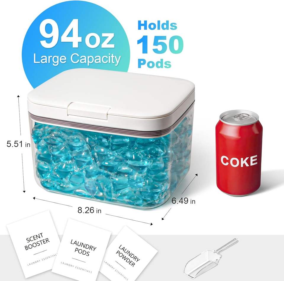 Laundry Pods Container 94 Fl oz Powder Holder Dispenser Organization Decor Plastic Pod Beads Detergent Containers