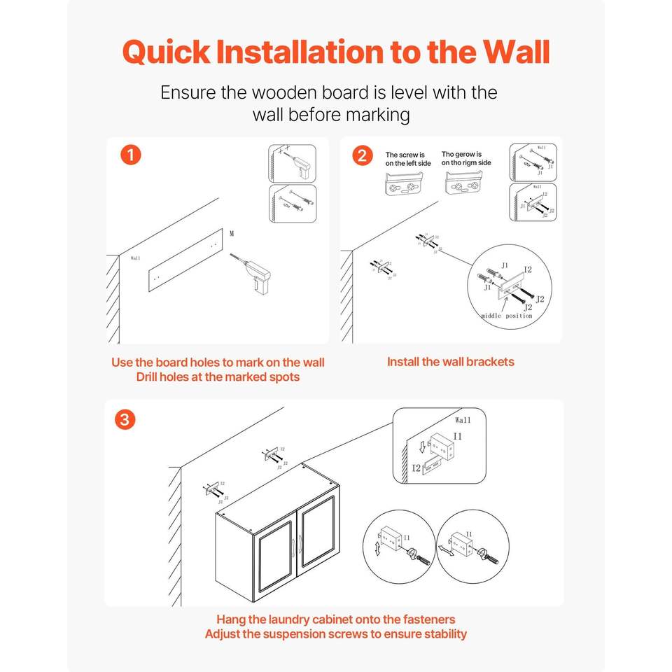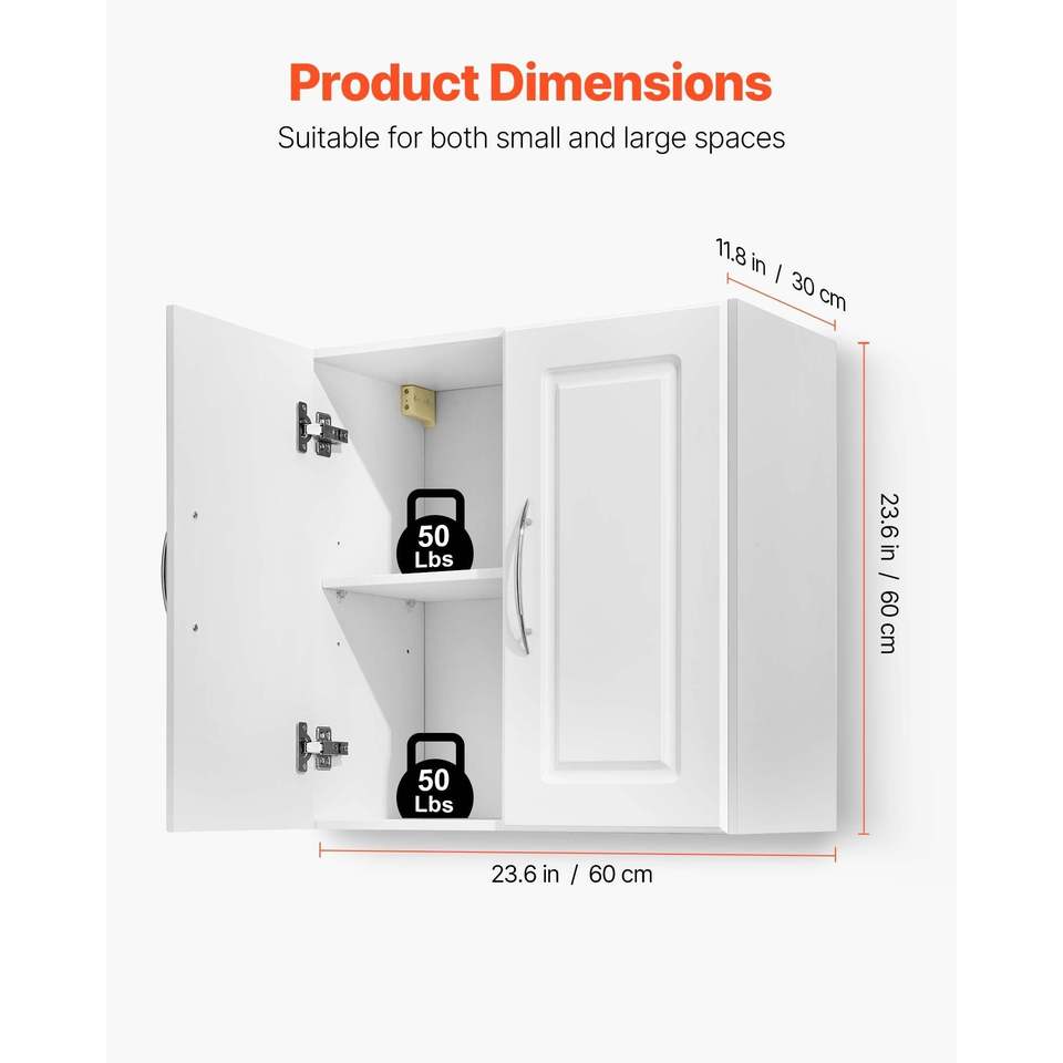 Laundry Room 2-Tier White Wall Mounted Cabinet 11.8 X 23.6 X 23.6 Adjustable Shelf Cupboard Storage 2 Doors for Kitchen Bathroom