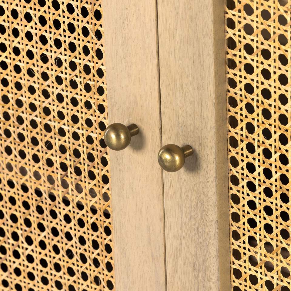 Description:modern sideboard made of solid teak wood and woven rattan doors.