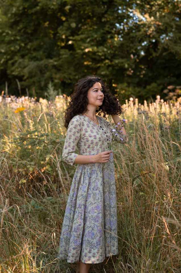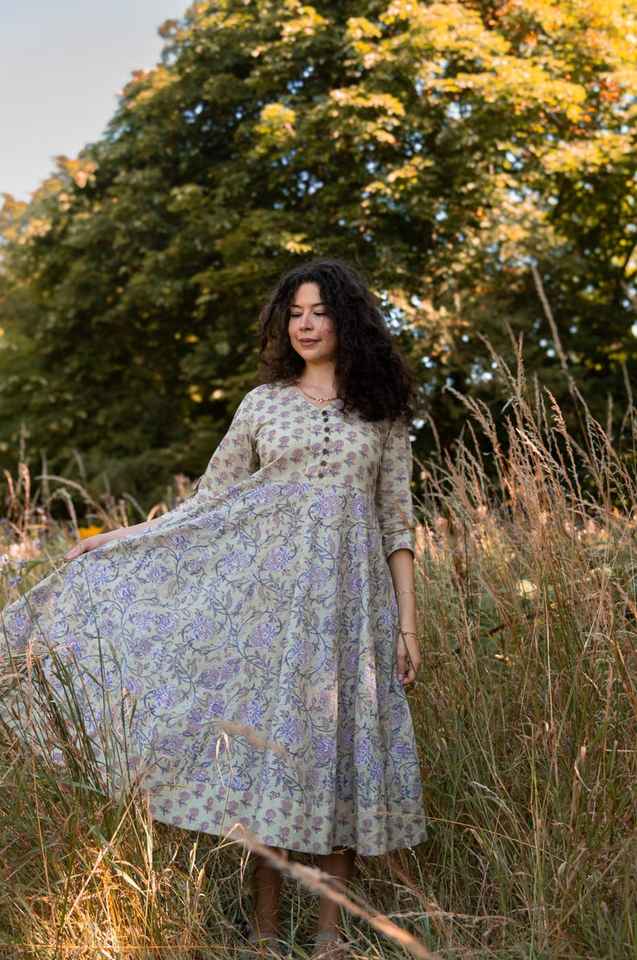 Laveda Dress Hand Block Printed Pure Cotton Bohemian Casual Occasional Holiday Summer Dress