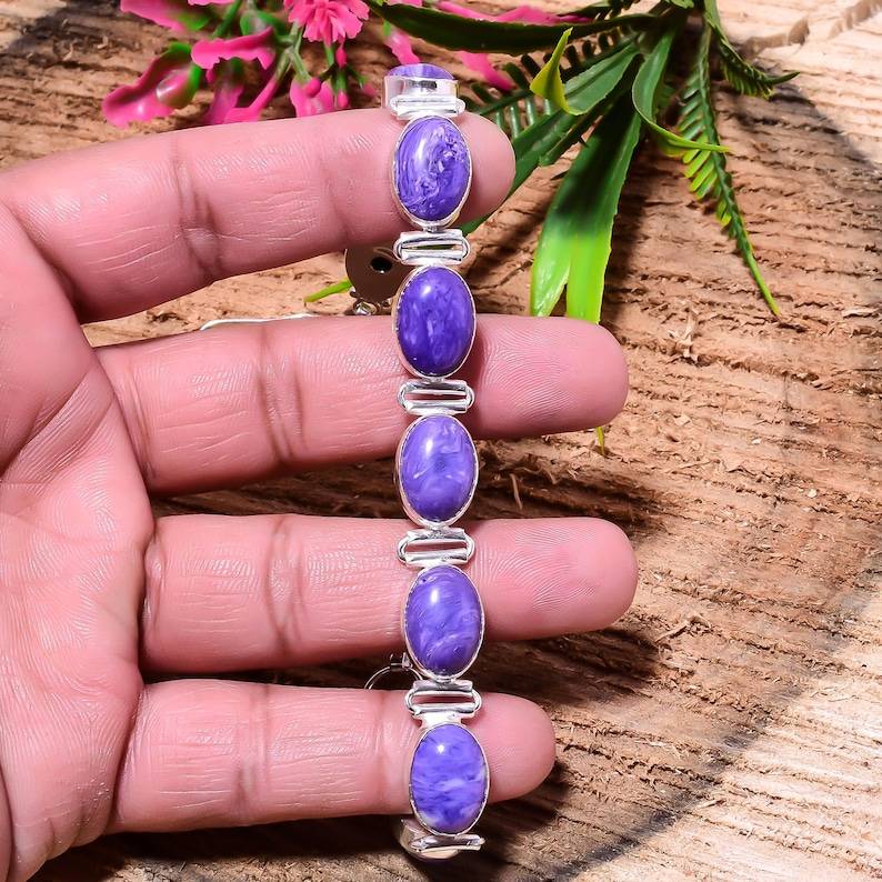 Lavender Chalcedony Bezel Set Bracelet Natural Purple Stone Handmade 925 Sterling Silver Jewelry Gift For Her