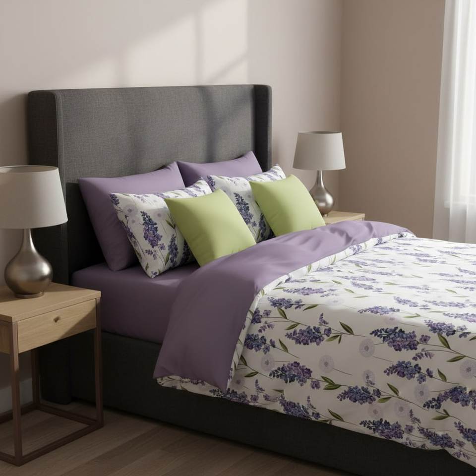 Lavender Floral 100% Cotton Bedding Set Queen Size Modern Design Machine Washable Duvet Cover Pillowcases Bedroom Set