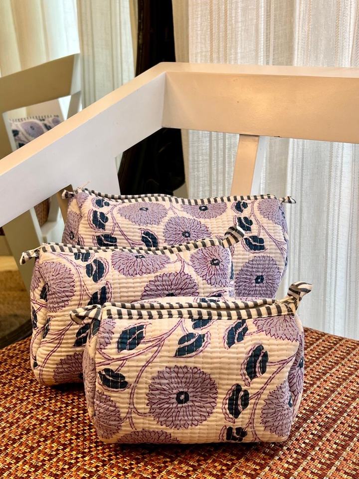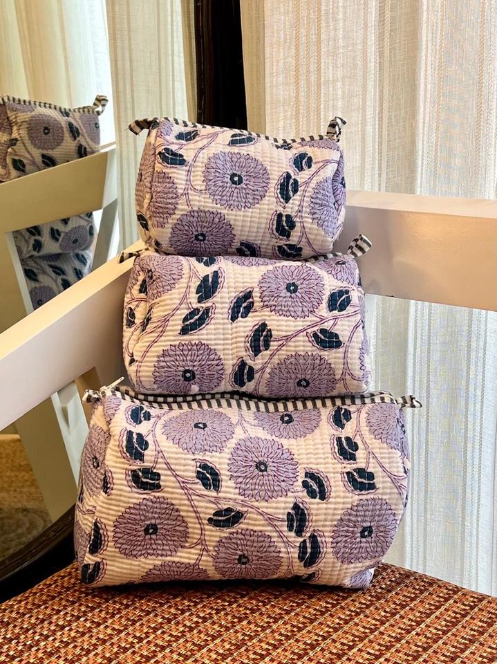 Lavender Florals Quilted Eco-Friendly Case for Bag Large Capacity Durable Waterproof Vintage Style Zipper Closure