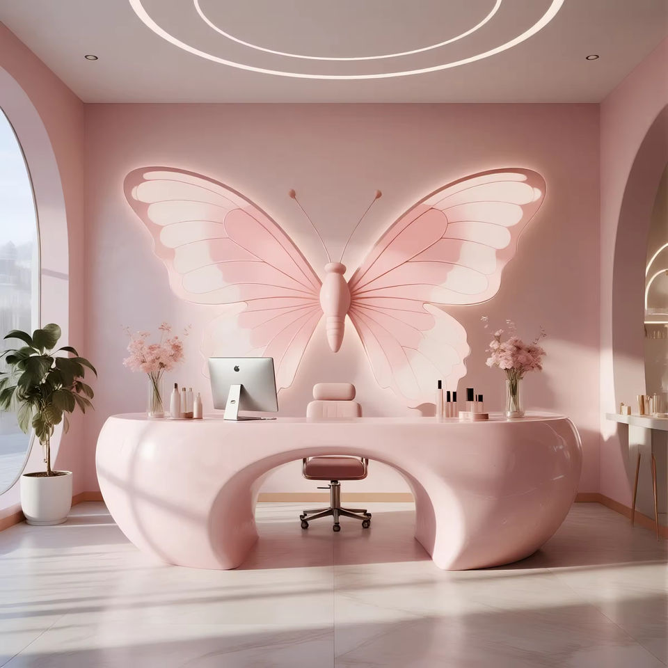 Lavender Flower Inspired Modern Extendable Reception Desk with Curved Counter for Hotels & Malls