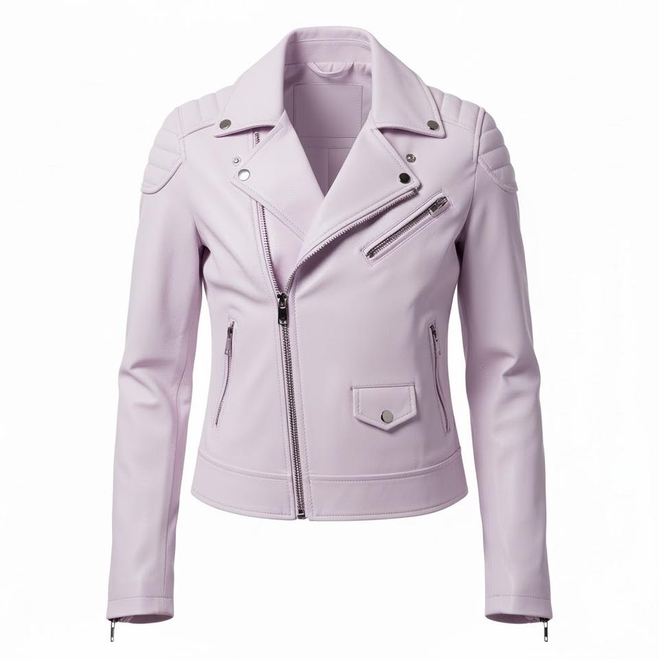 Lavender Leather Motorbike Jacket Women Custom Wholesale Factory Bulk Supply Genuine Leather Biker Style Ladies Fashion jacket