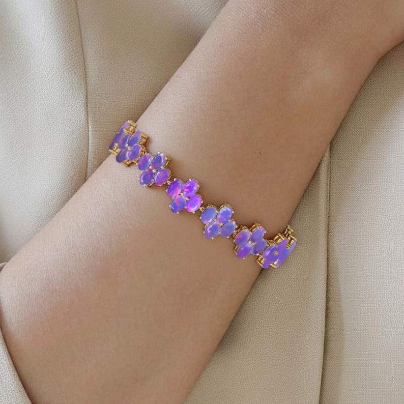 Keyword:Lavender Ethiopian Fire Opal Tennis Glowing Bracelet Crafted