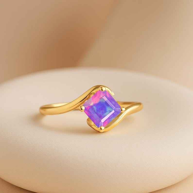 Lavender Opal Gemstone Ring 925 Sterling Silver 14K Gold Plated Statement Ring Handmade October Birthstone Gift For Mom