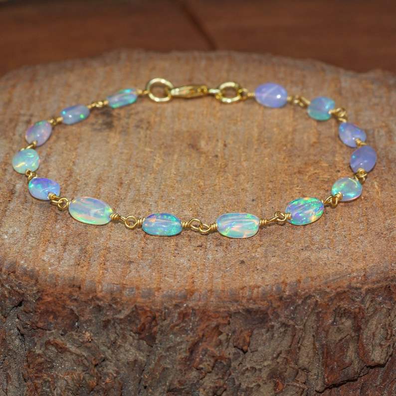 Lavender Opal Tumble Beads Wire Wrap Bracelet Natural Ethiopian Opal Beads Handmade Bracelet Gift For Mom