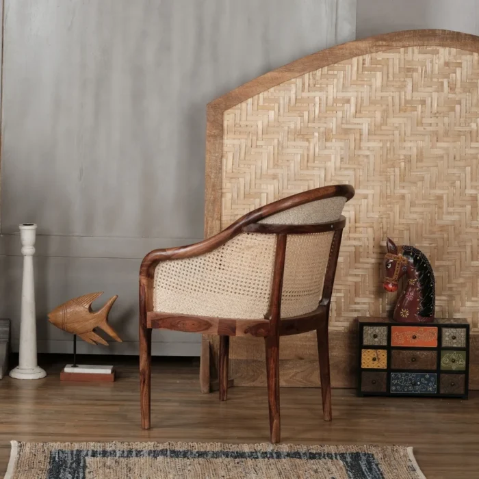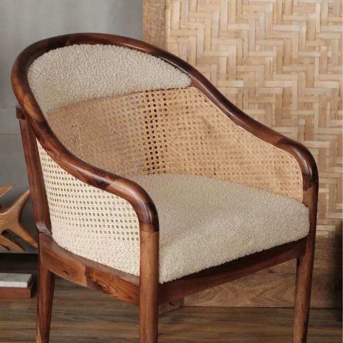 Laviana Royal Solid Wood Boucle Chair Handcrafted Tufted Foldable Stylish Comfortable Seating Furniture for Bedroom Living Room