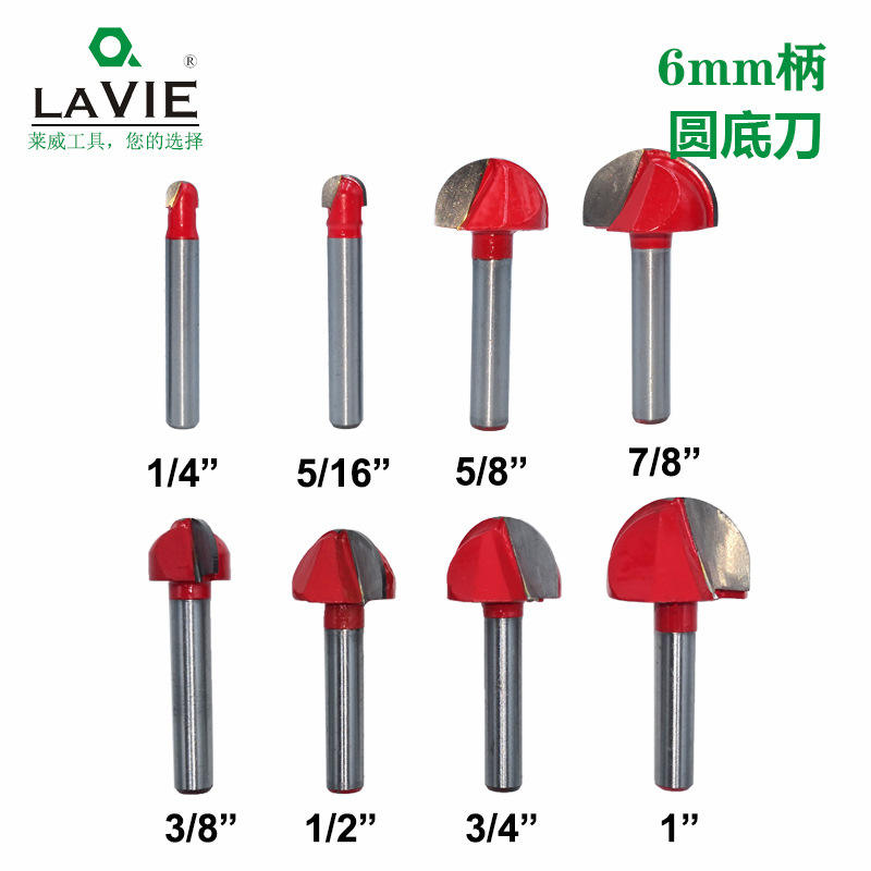 Lavie Round Bottom Router Bit 6mm Shank Carbide Woodworking Knife For Engraving Machine 1/4 To 1 Inch Set