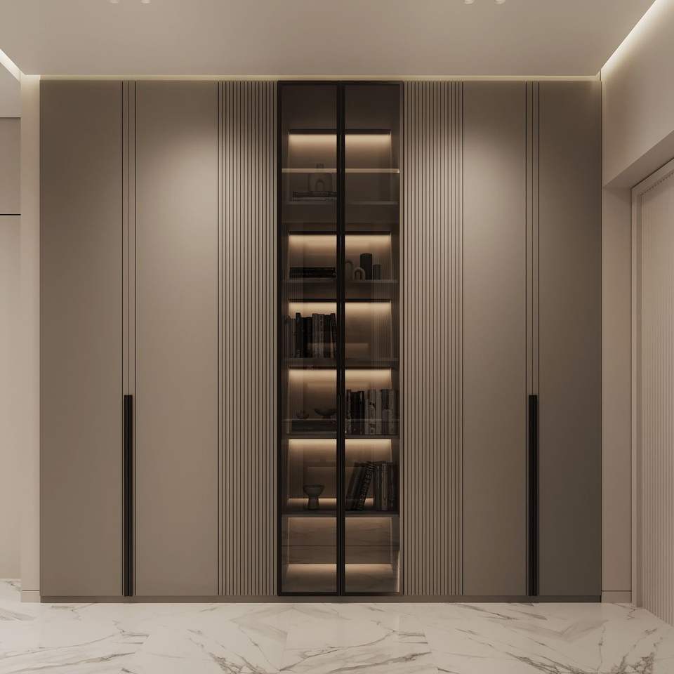 Laxurious style Wardrobe modern design solid wood with flat panel sliding doors Eco friendly large capacity.