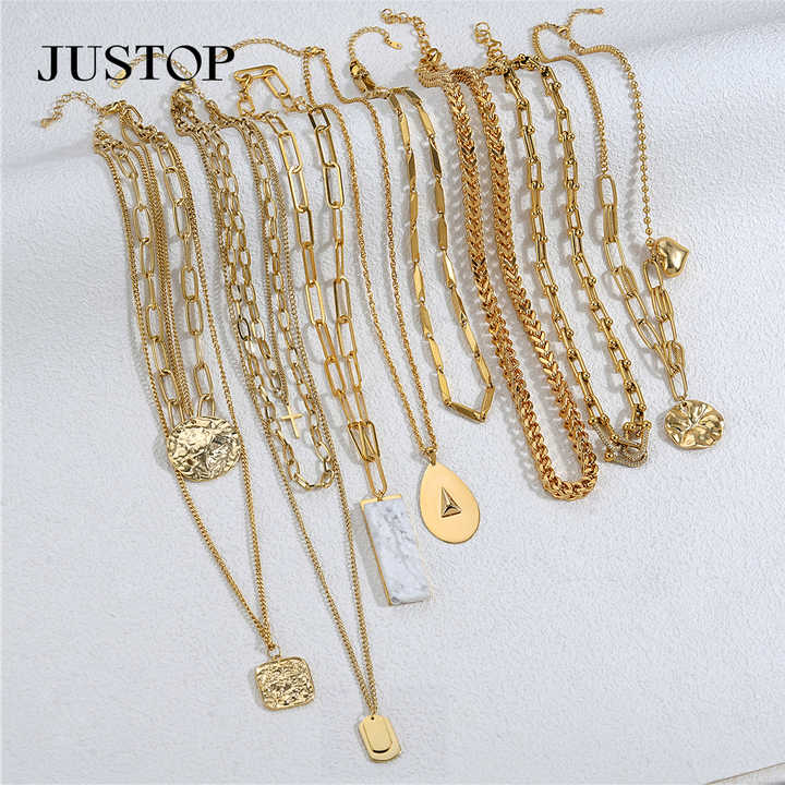 Layers Long Unisex OEM Wholesale Custom Stainless Steel Gold Silver Plating Trendy Link Chain Pendant Necklace