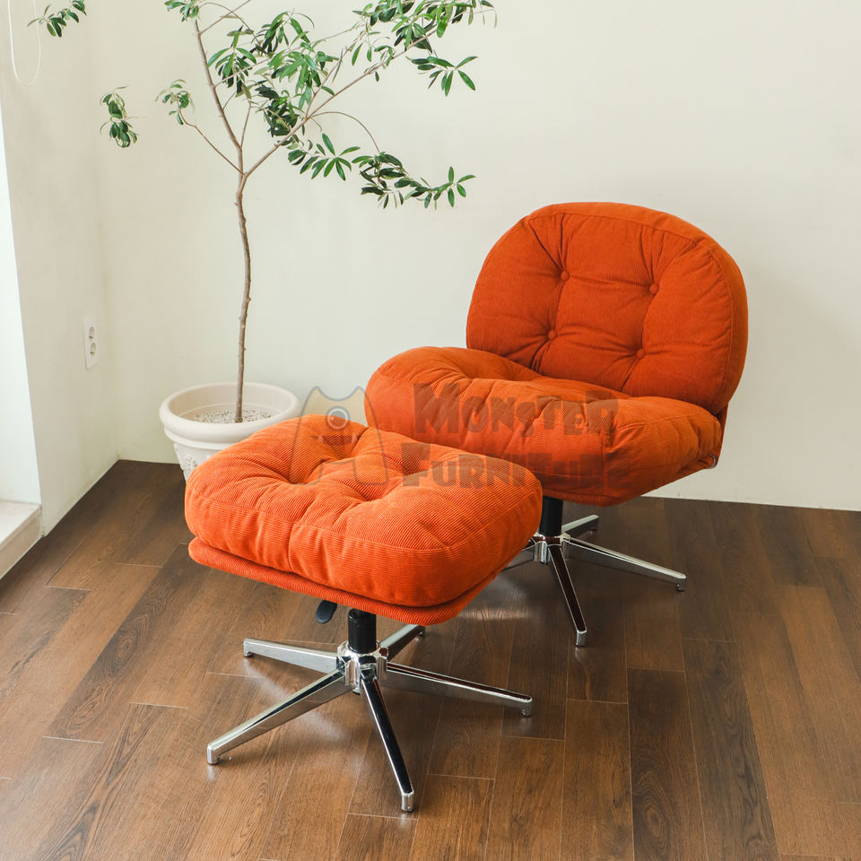 Le Muse Chair and Ottoman Set Plush Comfort Corduroy Adjustable Height Stable Base Modern Lounge Cozy Soft