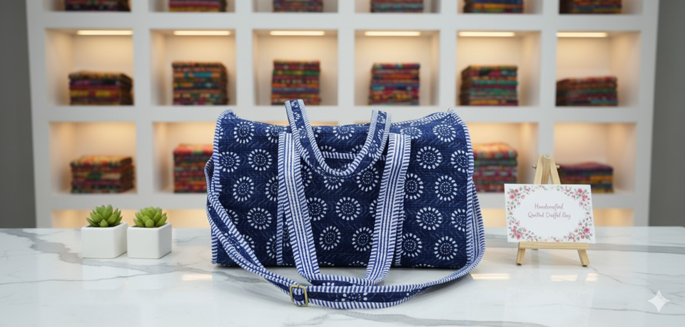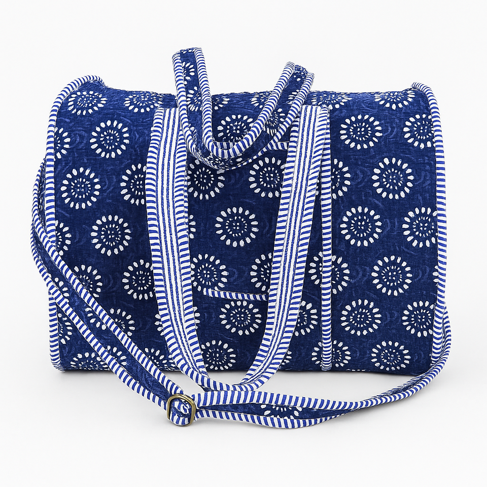 Le Souvenirs Handcrafted Quilted Weekender Duffel Bag-Luxury Sport Blue Print Zipper Closure Eco-Friendly Large Capacity