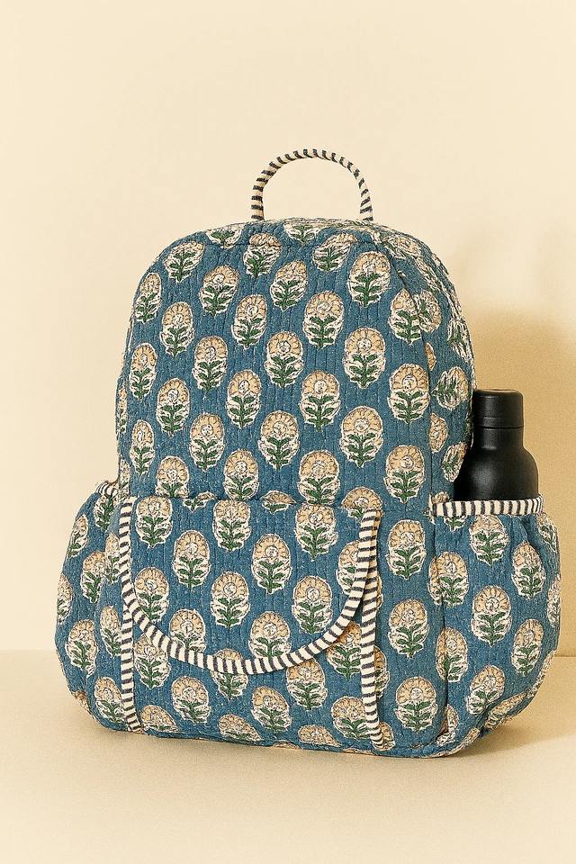Le Souvenirs Handmade Quilted Cotton Backpack Zipper Closure-10kg Capacity Lightweight Luxury Style for Travel Outdoor
