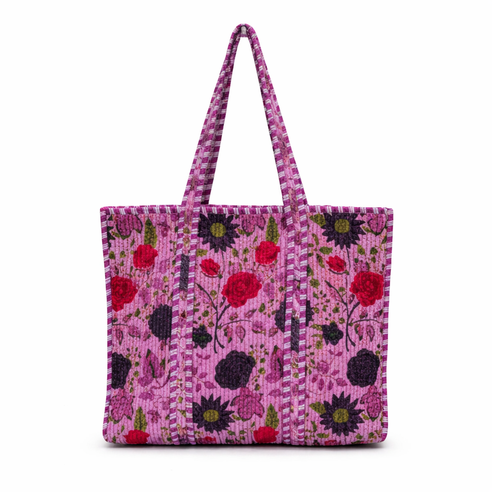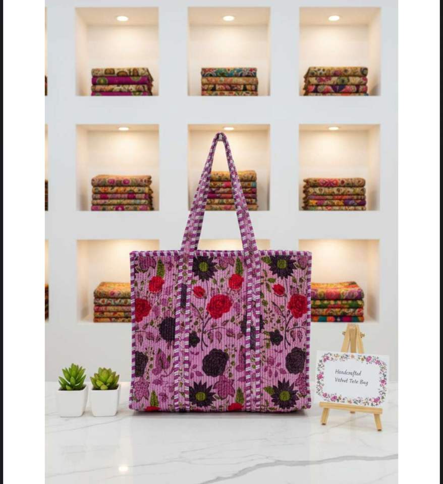 Le Souvenirs Indian Handmade Vintage Zipper Customized Bohemian Fashion Quilted Velvet Reversible Lightweight Spring Canvas Tote