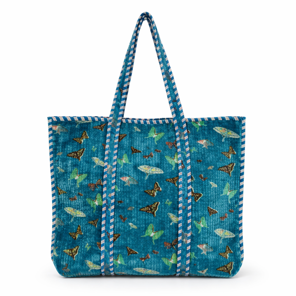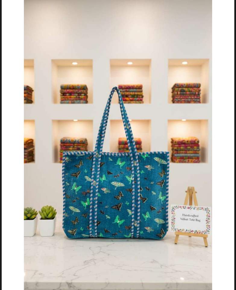 Le Souvenirs Lady Customized Reversible Bohemian Vintage Fashion Velvet Lightweight 18" Shoulder Tote Travel Bag Canvas Lining