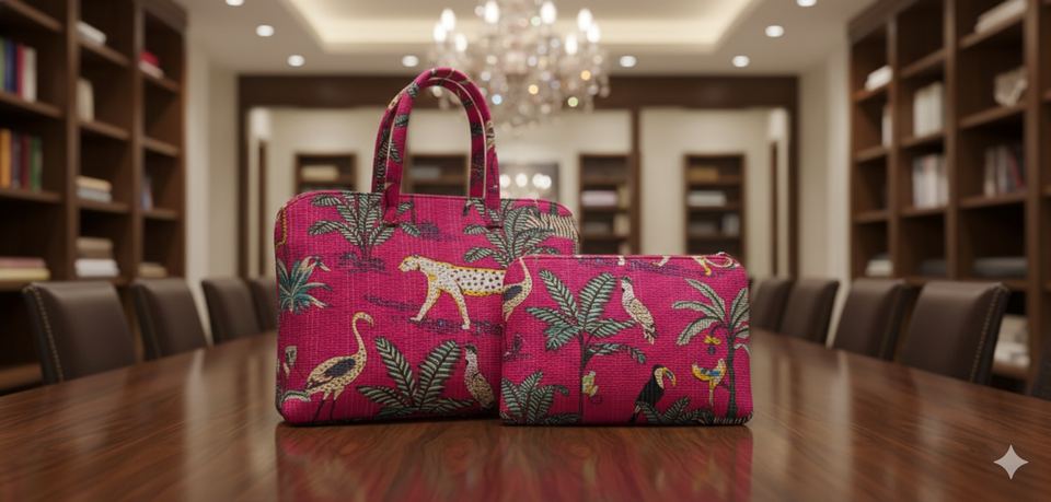 Le Souvenirs Quilted Cotton Construction Three-Layered Design Rubberized Sheet Two-Piece Set Laptop Bag Sleeves Coordinated Set