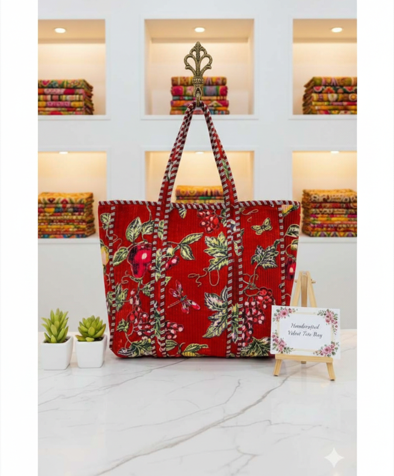 Le Souvenirs Red Quilted Reversible Lightweight Velvet Bohemian Fashion Lady Travel Quilted Bag Customized Zipper Closure Inner