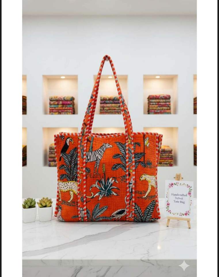 Le SouvenirsOrang Tiger Print Lady Customized Reversible Bohemian Vintage Fashion Velvet Lightweight 18" Shopping Bag Canvas