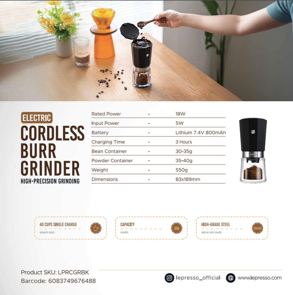 LePresso High Conical Burr Glass Container Manual Coffee Grinder