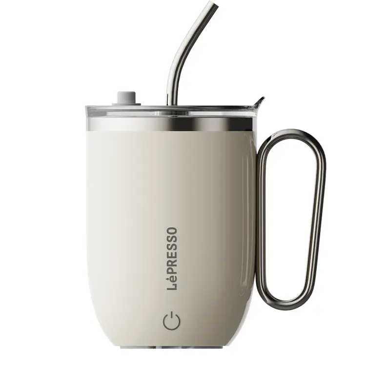 LePresso Sip Spin Magnetic Auto-Stirring Mug Touch Button 420mL Capacity 300mAh Battery 30s Mixing Time USB-C Charging