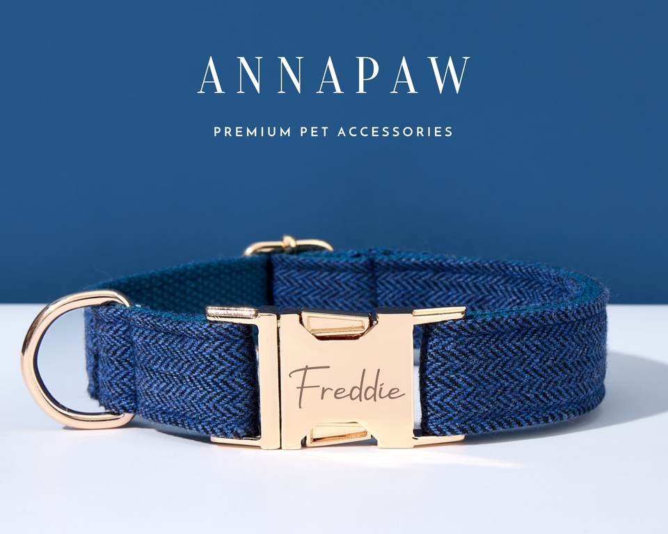 Lead Set In Navy Herringbone,Personalized Puppy Collar For Birthday Gift,Free Harness Leash Set,Customized Dog Tag