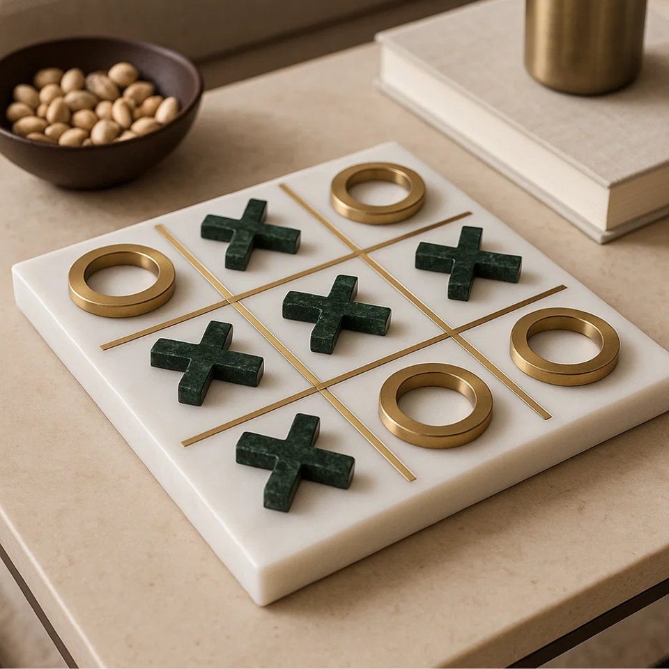 Luxury Marble Tic Tac Toe Game Set Brass-Accented X&O Pieces Heirloom Office Decor Viral 2025 TikTok Desk Art Collector's Item