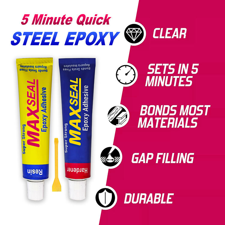 Leading Supplier of Superior Insulation Premium Quality Super Strong Maxseal 5 Minute Quick Setting Clear Steel Epoxy Adhesive