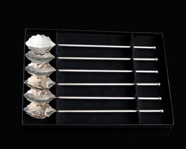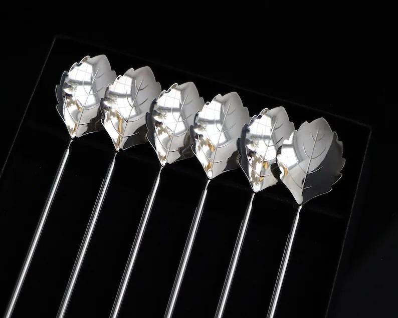 Leaf Design Cocktail Stirrer Set Elegant Long Handle Smooth Mixing Reusable Bar Accessory Perfect For Drinks Parties And Bars