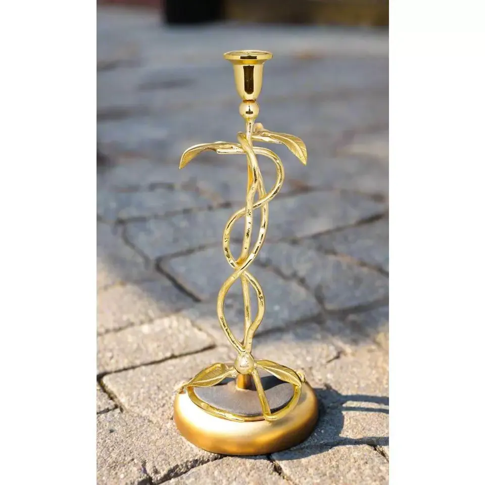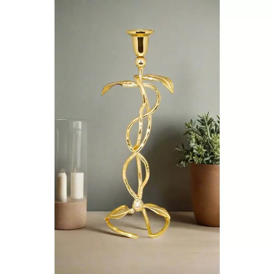 Leaf Design Gold Candle Holders Hammered Finished Wedding Accent Piece for Christmas