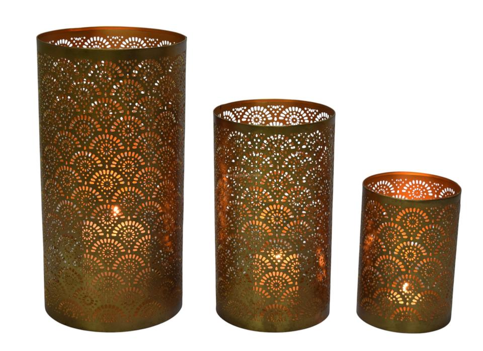 Leaf Design Handmade Metal Tea Light Holder Black & Gold Votive Perforations for Home Christmas Easter Valentine's Day Decor