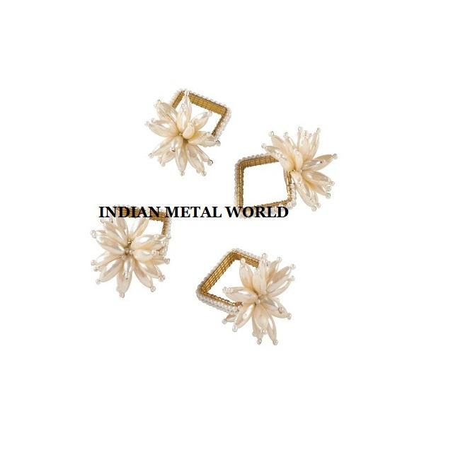 Premium Quality Leaf Design Solid Brass Napkin Ring Table Decorative Gold Polished Large Size Napkin Ring At Affordable Price