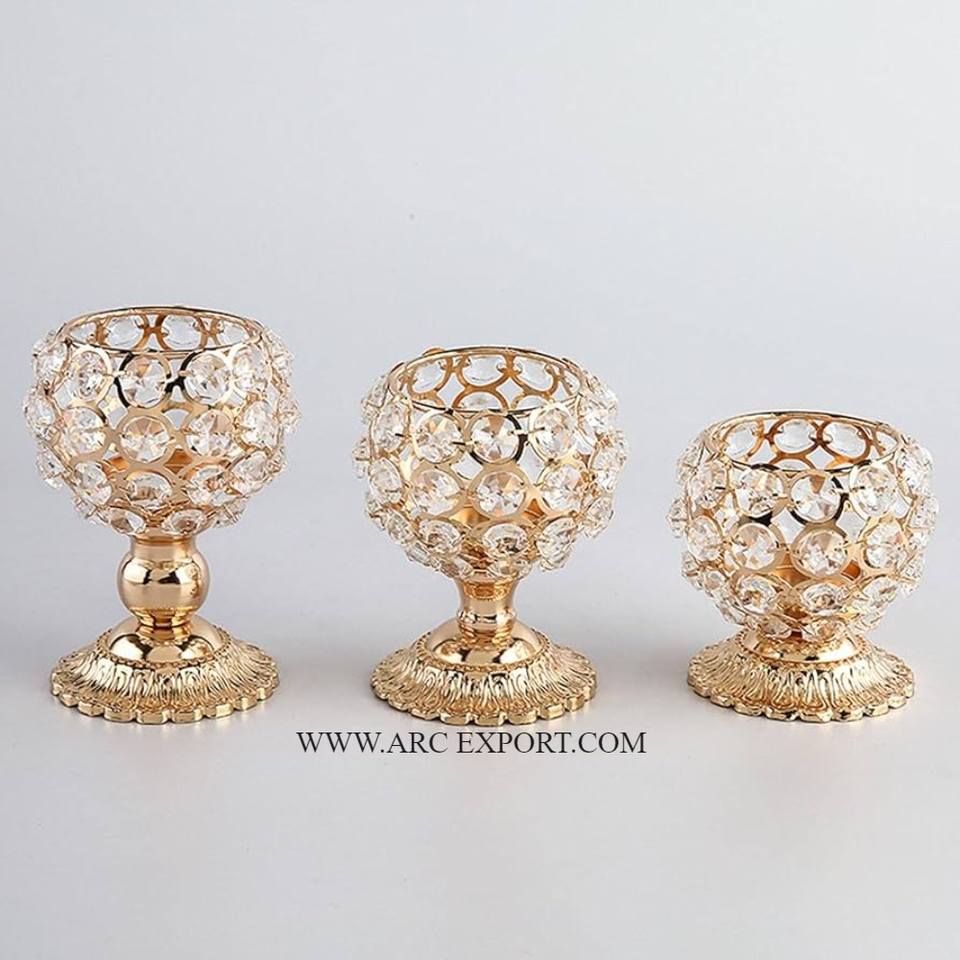 Leaf Designer Metal and Crystal Table Accessories Home Decor Lights Candle Votives Custom Size Indoor and Outdoor Candle Holder